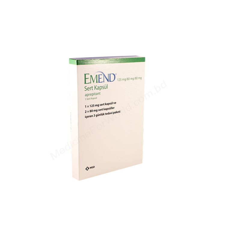 Emend (APREPITANT) is a prescription medicine used to treat prevent nausea and vomiting caused by cancer drug treatment (chemotherapy). Aprepitant works by blocking one of the body’s natural substances (substance P/neurokinin 1) that causes vomiting. Emend manufactured by MSD pharma Ltd. in Ireland.