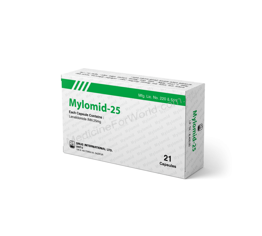 Mylomid (Lenalidomide), generic Revlimid is a prescription medicine used to treat certain cancers e.g. multiple myeloma, mantle cell lymphoma (MCL), myelodysplastic syndromes (MDS). Mylomid manufactured by Drug International Ltd. in Bangladesh.