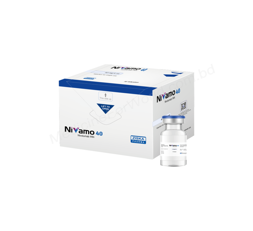 Nivamo (Nivolumab), generic OPDIVO is a prescription medicine used to treat lung cancer, head and neck squamous cell cancer, skin cancer (called melanoma), kidney cancer, classical Hodgkin lymphoma (a type of blood cancer), urothelial carcinoma (bladder cancer), liver cancer, colorectal cancer. Nivamo manufactured by Ziska Pharma Ltd. in Bangladesh.